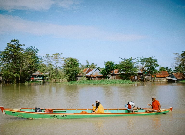 We cruise on the lake with a long tail boat and visit a traditional floating house where we can enjoy drinking tea or coffee and eating fried banana (Pisang Goreng) with the locals.